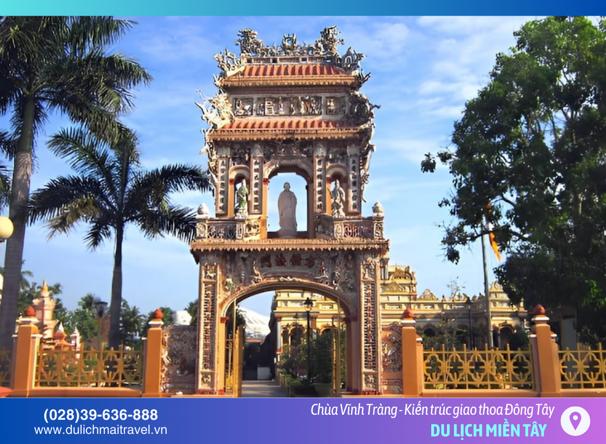 Ngôi chùa gây ấn tượng với sự kết hợp hài hòa giữa kiến trúc phương Đông, phương Tây và nét nghệ thuật truyền thống Việt Nam. Chính sự giao thoa độc đáo này đã tạo nên vẻ đẹp riêng biệt, khiến Chùa Vĩnh Tràng trở thành điểm đến tâm linh nổi tiếng của vùng sông nước.