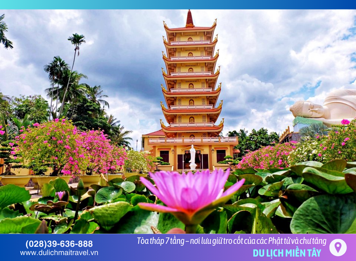 Bên cạnh đó, phía sau chùa còn có tòa tháp 7 tầng – nơi lưu giữ tro cốt của các Phật tử và chư tăng, tạo nên không gian linh thiêng và trang nghiêm.