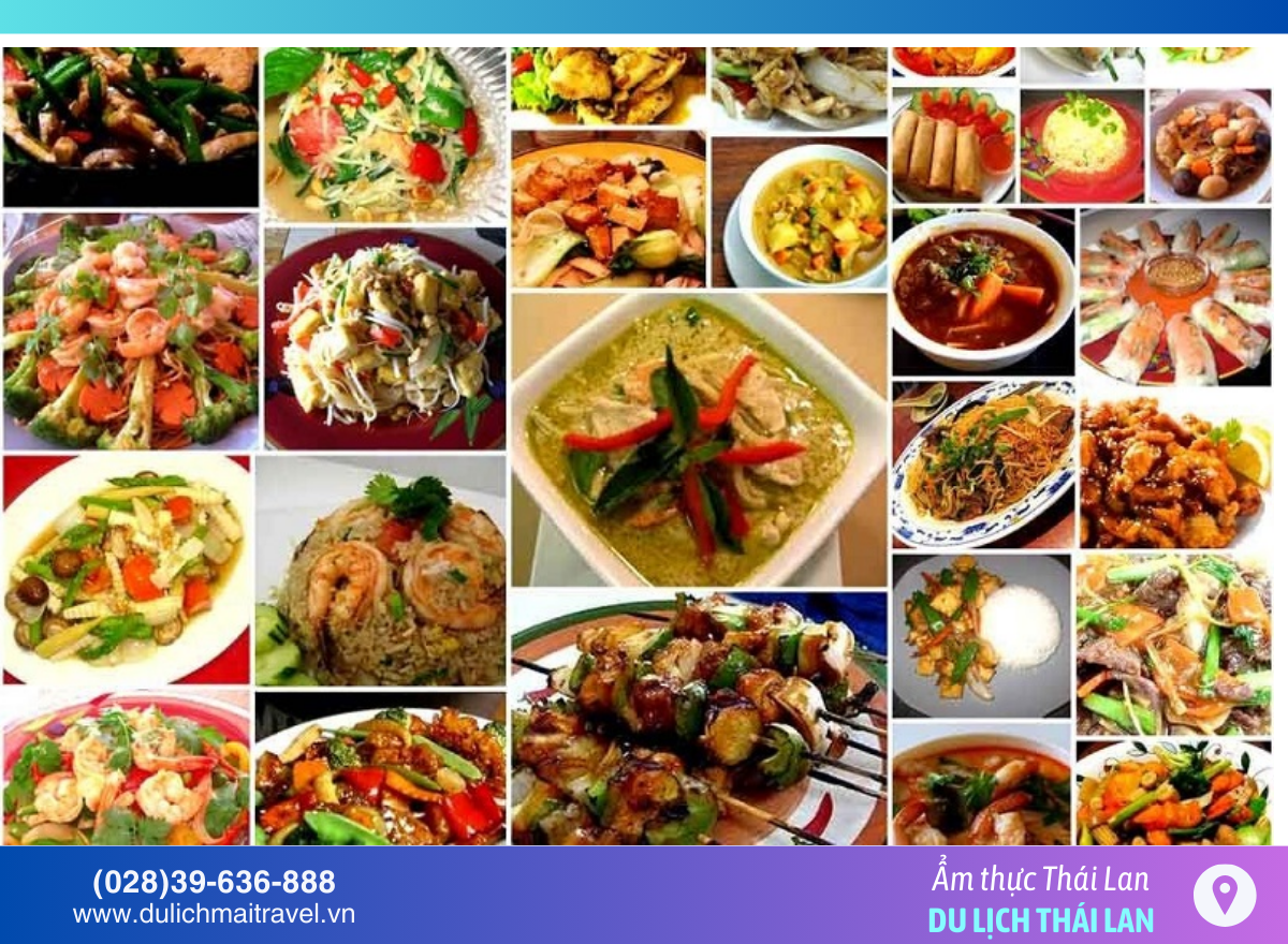 - Các món đặc trưng như Pad Thai, Tom Yum Goong, xôi xoài, trà sữa Thái với hương vị đậm đà bản địa.