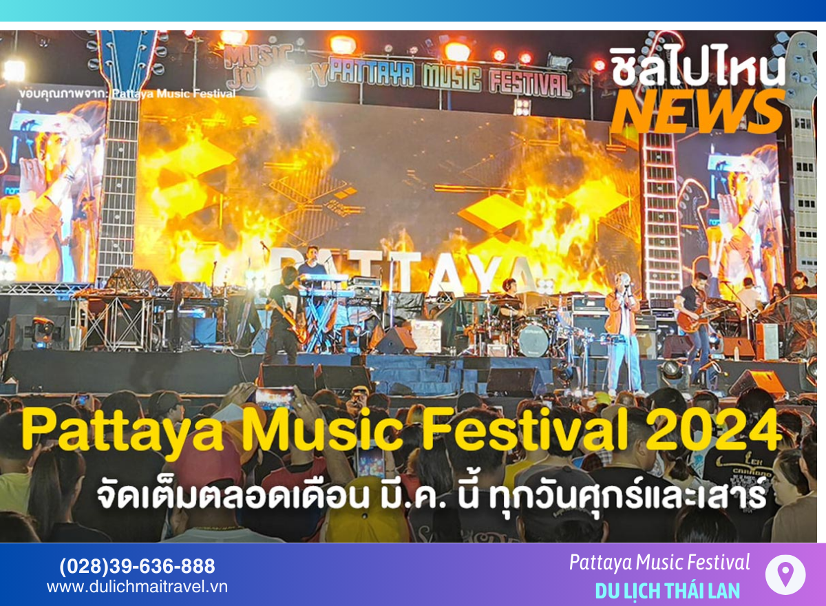 1. Pattaya Music Festival – Lễ hội âm nhạc ven biển Một trong những sự kiện ngoài trời lớn nhất Thái Lan, thường diễn ra suốt tháng 3 tại Pattaya Beach và Jomtien Beach, thu hút hàng chục nghìn người tham dự.