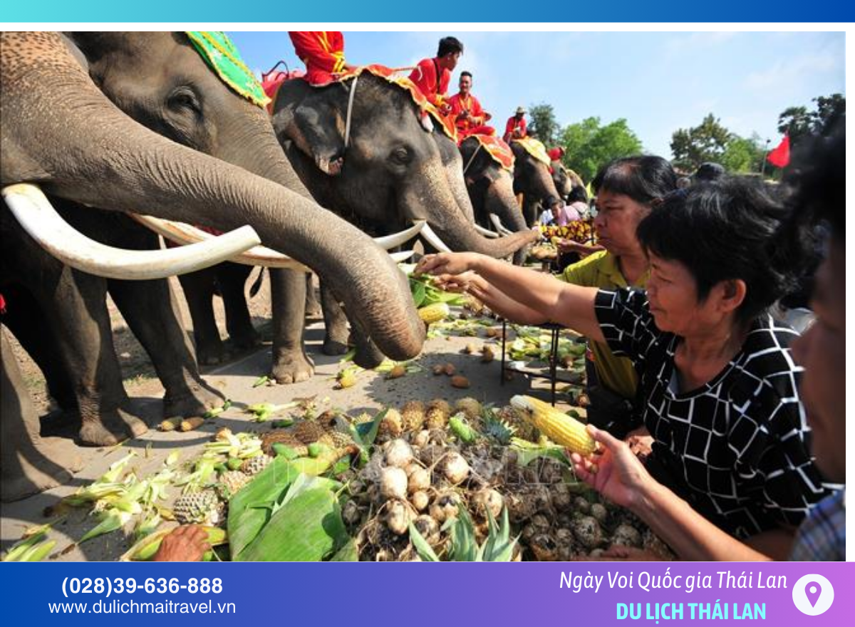 2. Ngày Voi Quốc gia Thái Lan (13/3 hàng năm) Ngày lễ tôn vinh loài voi – biểu tượng văn hóa và lịch sử của người Thái. Nhiều trung tâm bảo tồn tổ chức hoạt động đặc biệt: chăm sóc voi, cho voi ăn, tìm hiểu về voi, diễu hành và biểu diễn văn hóa.