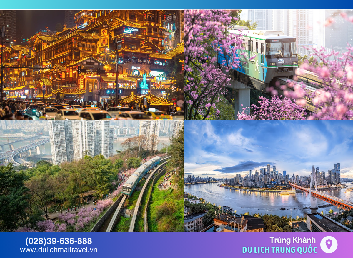 Trùng Khánh gây ấn tượng với địa hình đồi núi đan xen sông nước, hệ thống giao thông nhiều tầng độc đáo và không khí sôi động về đêm. Đừng bỏ lỡ Hồng Nhai Động lung linh ánh sáng, cầu Hoàng Hoa Kỳ đặc biệt, hay thưởng thức lẩu cay Trùng Khánh. Thành phố này mang đến trải nghiệm đô thị khác biệt hoàn toàn so với các nơi khác. M.A.I Travel có các tour khám phá Trùng Khánh kết hợp du thuyền sông Dương Tử để bạn chiêm ngưỡng vẻ đẹp hùng vĩ.