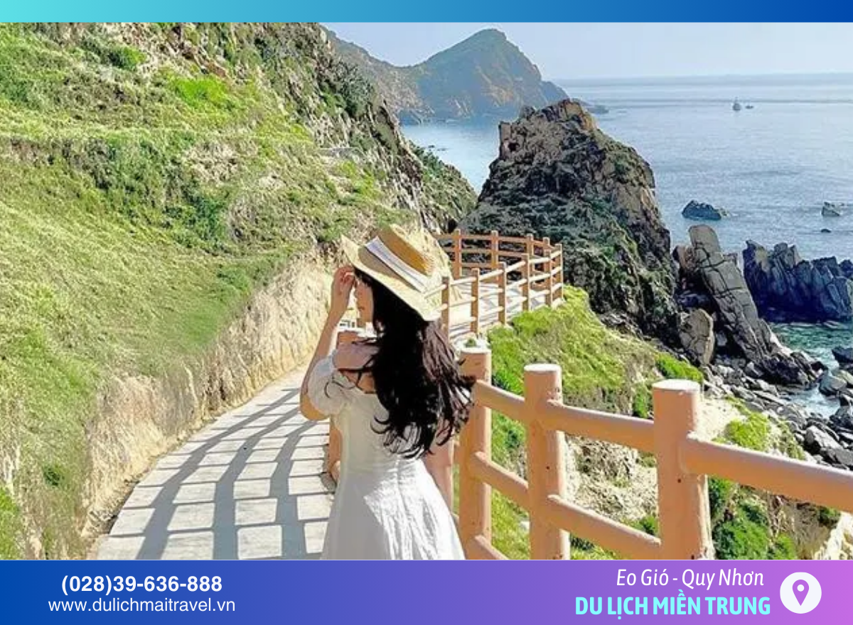 Eo Gió. Đây là địa điểm nổi tiếng với cảnh quan biển hùng vĩ và con đường đi bộ ven núi tuyệt đẹp. Từ đây, du khách có thể ngắm trọn khung cảnh đại dương xanh bao la.