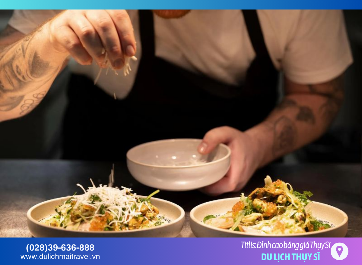 - Ẩm thực: Hệ thống nhà hàng sang trọng với tầm nhìn hướng ra dãy Alps hùng vĩ.