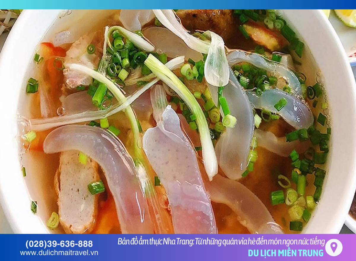 Nếu bạn vẫn đang thắc mắc “Đặc sản Nha Trang có gì lạ?” thì Bún sứa chính là câu trả lời hoàn mỹ nhất. Đây là món ăn mang trọn hơi thở của biển cả, nổi tiếng với sự thanh đạm, tươi mát, rất thích hợp để thưởng thức vào những ngày nắng vàng phố biển.