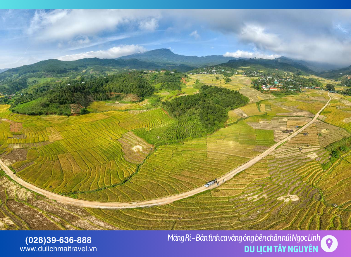 Nằm ẩn mình dưới chân dãy Ngọc Linh hùng vĩ, ruộng bậc thang Măng Ri (Kon Tum) hiện lên như một bức tranh thủy mặc khổng lồ của núi rừng Tây Nguyên. Không quá ồn ào như những cánh đồng ở Tây Bắc, Măng Ri mang vẻ đẹp hoang sơ, thuần khiết với những “nấc thang vàng” uốn lượn giữa mây ngàn. Nơi đây không chỉ có hương lúa mới ngọt ngào mà còn là vùng đất huyền thoại của Sâm Ngọc Linh quý hiếm. Hãy cùng M.A.I Travel hành trình về với Tu Mơ Rông để chạm tay vào tuyệt tác thiên nhiên đầy mê hoặc này!
