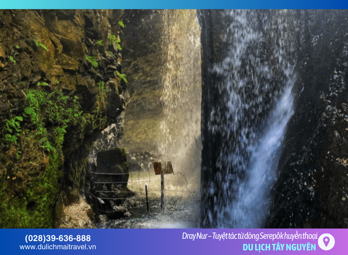 Ít ai biết rằng ngay sau màn nước đổ trắng xóa là một hang động kỳ bí rộng gần 3.000m2. Để vào được đây, bạn phải vượt qua những tia nước mạnh mẽ - một trải nghiệm đầy kích thích. Bên trong hang, không khí mát lạnh và bóng tối bao trùm sẽ khiến bạn cảm thấy như đang tham gia một cuộc phiêu lưu vào tâm trái đất. M.A.I Travel sẽ trang bị đầy đủ đèn pin và thiết bị bảo hộ để bạn tự tin khám phá “mê cung” huyền diệu này.