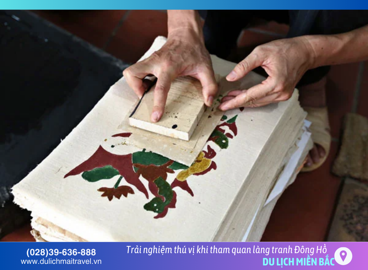 Du khách có thể tham gia hoạt động tự tay in tranh Đông Hồ dưới sự hướng dẫn của các nghệ nhân. Đây là trải nghiệm thú vị giúp bạn hiểu rõ hơn về nghệ thuật làm tranh truyền thống.