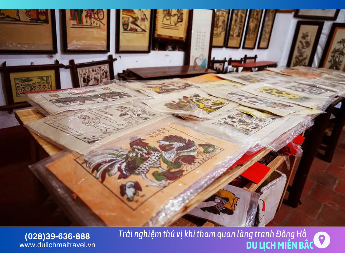 Một trong những trải nghiệm không thể bỏ qua khi đến đây là chọn mua những bức tranh Đông Hồ làm quà lưu niệm. Mỗi bức tranh đều mang ý nghĩa riêng, rất thích hợp để trang trí nhà cửa hoặc tặng người thân, bạn bè.